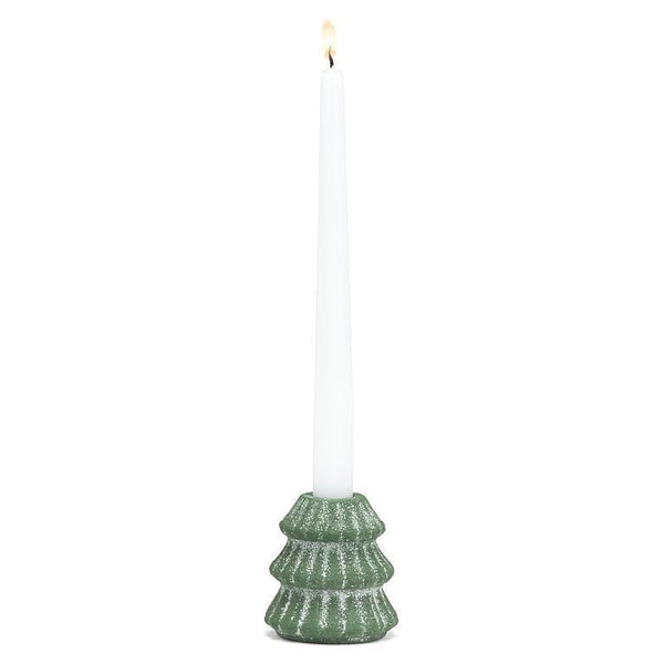 Bring a touch of winter wonder indoors with this Small Snowy Evergreen Tree Taper Holder. The simple minimalist shape of this decorative evergreen, accented with a soft dusting of snow, is the perfect complement for contemporary, minimalist decor. Perfect for filling any corner with holiday cheer, its elegant form is an understated way to celebrate the season with both restraint and style.