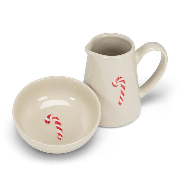 Pour on the holiday cheer with the help of this adorable Candy Cane Mini Jug. Crafted out of stoneware, this simple off-white miniature jug accented with a candy cane is perfect for pouring anything from milk or cream to maple syrup — a fun and festive complement to all your holiday mornings. Matching Candy Cane Mini Bowl also available.